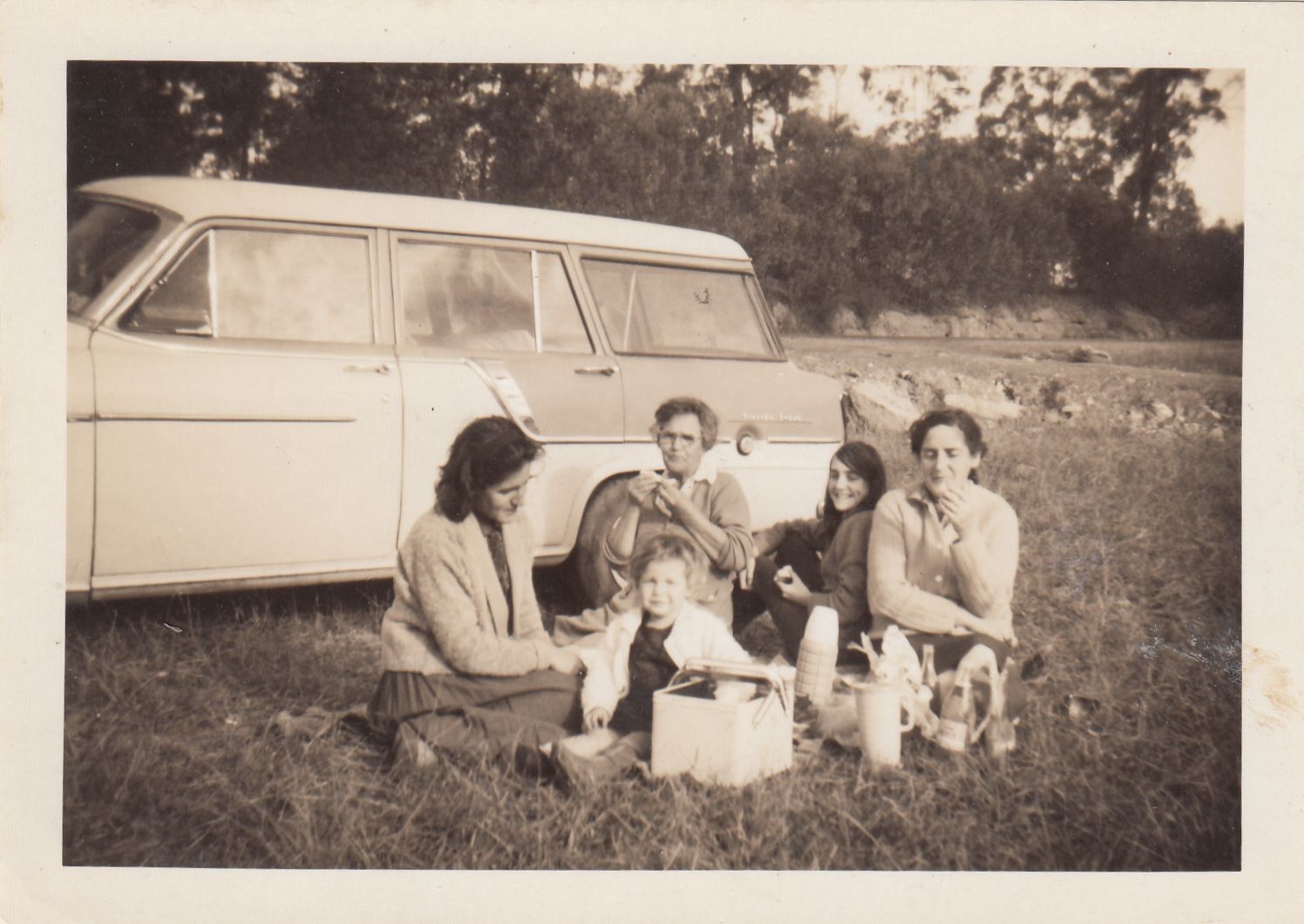 Evelyn and family pinic ( back row on Left with Margaret and Bertha, front row Lynette and Sharon